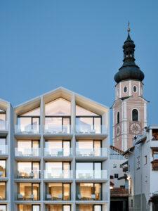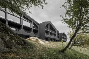 Il progetto è costituito da tre strutture monolitiche che ricordano la struttura originale della casa prima della ristrutturazione. Tenendo conto del contesto locale e dell’ambiente circostante, la forte identità architettonica dell’hotel segue una reinterpretazione contemporanea dello stile alpino e gioca con elementi tipici del luogo, come il tipico tetto a falde.