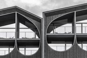 Meransen è un piccolo paese dell’Alto Adige con un importante background agricolo. Per questo motivo la forma curva della facciata dell’esoscheletro si ispira al forcone usato dagli agricoltori locali.