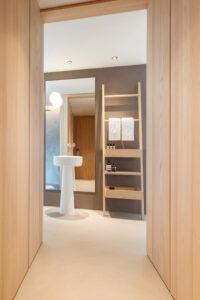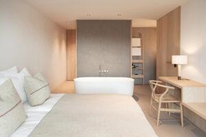 Le camere e le suite si trovano ai piani superiori e sono caratterizzate da un design senza tempo che crea un’atmosfera accogliente. I bagni a pianta aperta con vasche da bagno autoportanti invitano a fare un bagno rilassante dopo un’escursione o un tour sugli sci.